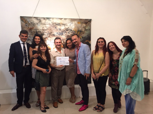 “il grande artista ha esposto la Maxitela “Diamoci una mano”