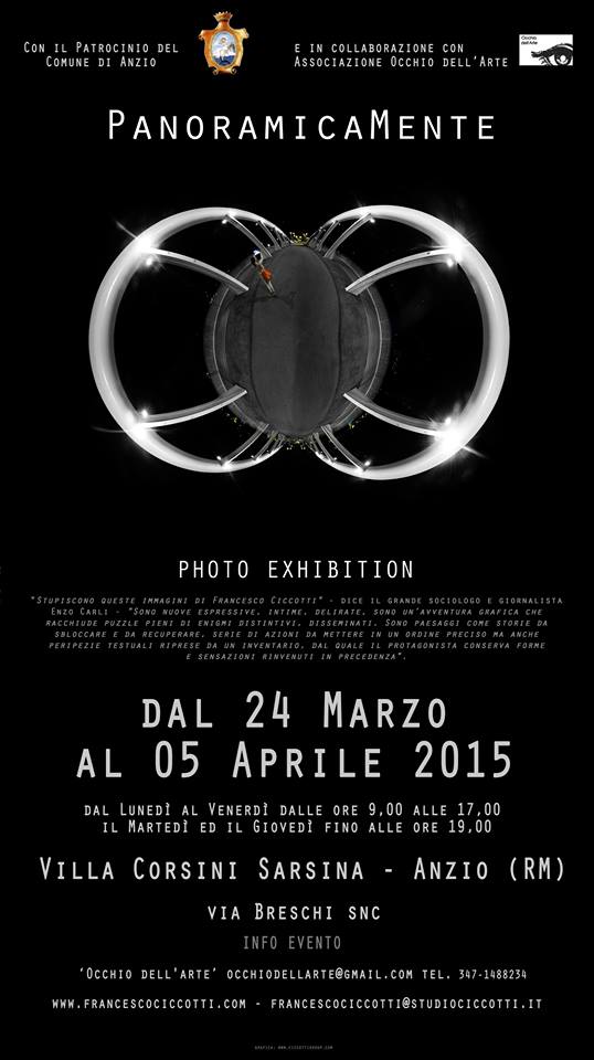 E' stato presentato ufficialmente martedi' 27 Gennaio 2015 a Roma, presso lo Studio Ciccotti, in un interessante incontro aperto al pubblico e moderato in maniera impeccabile dal conduttore Mediaset Anthony Peth, la conferenza stampa ufficiale del progetto fotografico dell'Architetto italiano Francesco Ciccotti, dal titolo "PanoramicaMENTE": uno splendido lavoro tra Fotografia e Design.