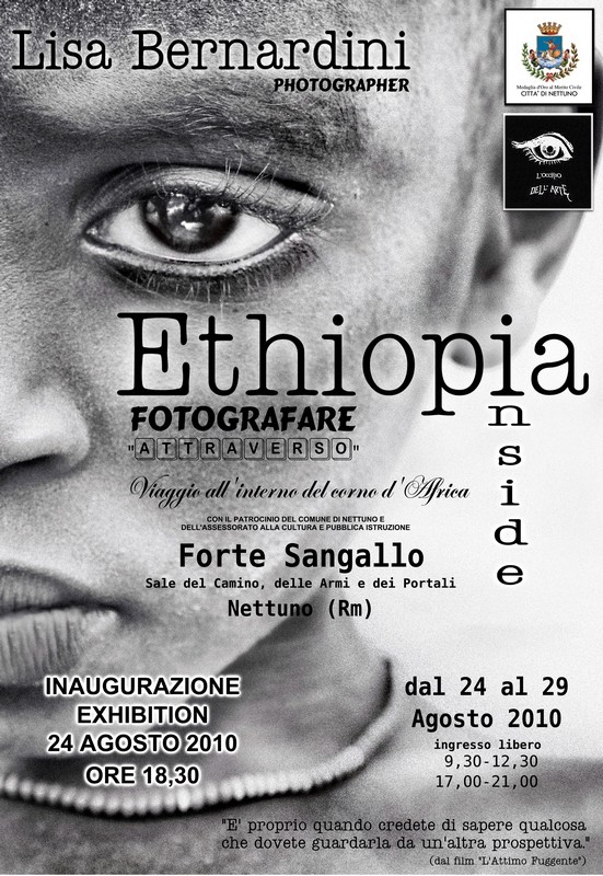 -Dall’1 all’ 16 Ottobre 2011 - in Catania - Centro Culturale "Le Ciminiere" - con il patrocinio della Provincia Regionale di Catania nonché di altre importanti istituzioni pubbliche e private come ad es. l’ dell’Arciconfraternita S. Eligio De’ Ferrari in Roma e il Fondo Ambientale Italiano,– all’interno della terza edizione dell’evento culturale denominato MED PHOTO FEST 2011, manifestazione a valenza turistico-culturale dedicata alla Fotografia d’Autore, si svolgera' la tappa siciliana di Ethiopia Inside di Lisa Bernardini e anche la collettiva femminile relativa a S. Agata: “Sant’Agata tra Sacro e Profano” , alla quale anche la fotografa romana ha aderito -