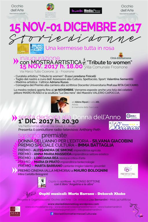 L'evento sara' ospitato durante una cena-spettacolo nel locale dell'imprenditore Mauro Boccuccia, a Via Nettunense km 31.500 angolo via Giove 1, che accogliera' anche la terza edizione di “INCONTRIAMOCI”,....(segue)...